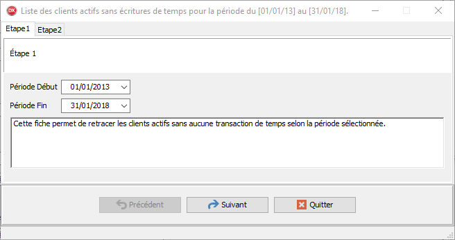 1. La lecture des clients sans aucune transaction de temps selon la période sélectionnée.