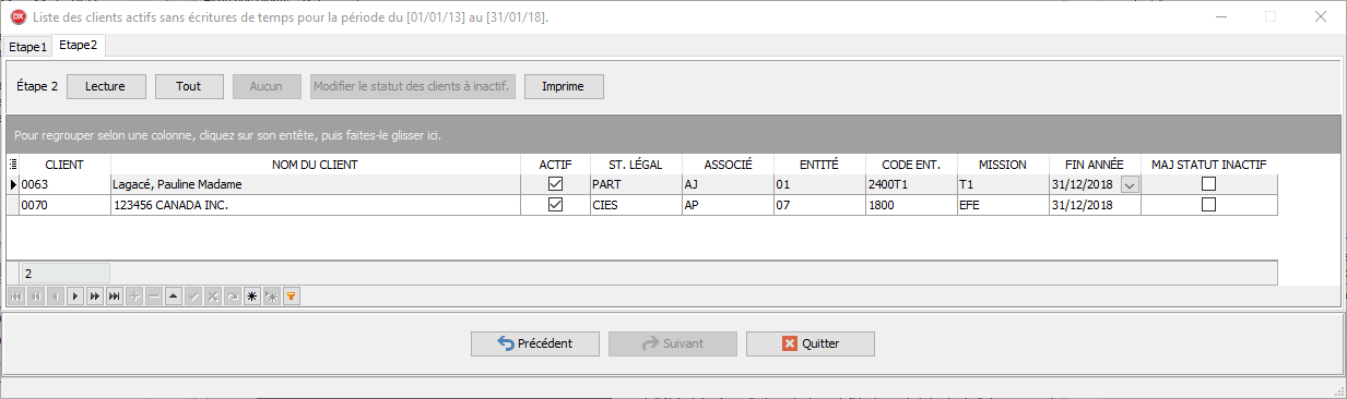 2. De tout sélectionner les clients proposés. La case "MAJ STATUT INACTIF" sera cochée. .